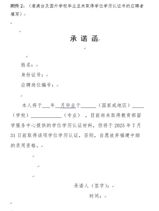 2. 承诺函(港澳台及国外学校毕业且未取得学位学历认证书的应聘者填写)