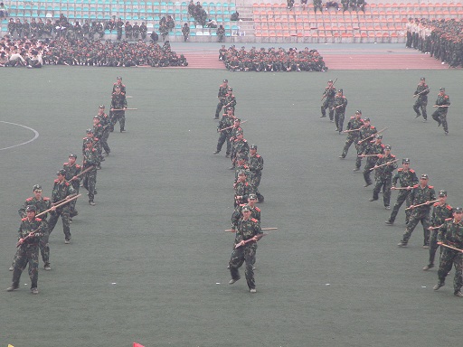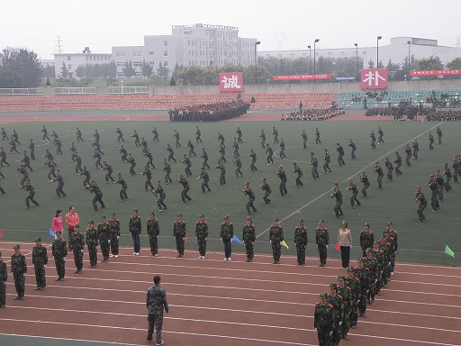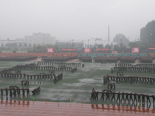 2011年9月10日,11级新生军训活动在小雨中圆满结束。军训汇演在北校区操场隆重举行。