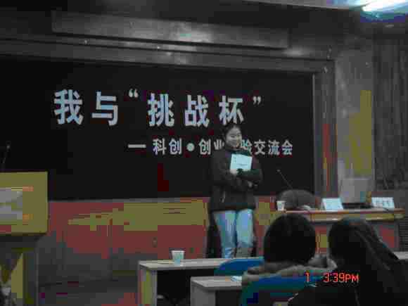 12月1日下午,农学院在七号楼二层报告厅举行“我与挑战杯”——科创经验交流会。理学院研究生何云和农学院04级胡亚军为广大科创爱好者主讲了一场精彩的报告。