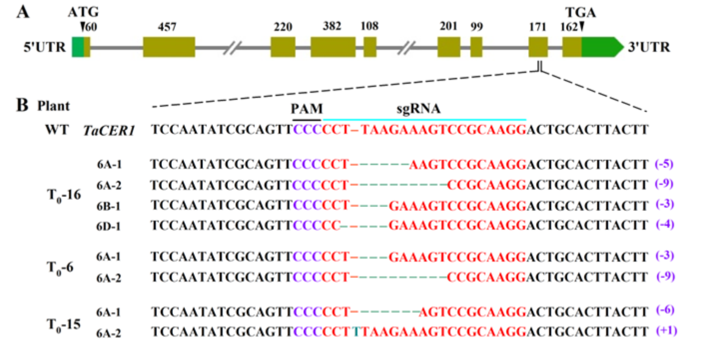图1 CRISPRCas9介导编辑小麦TaCER1-6A基因