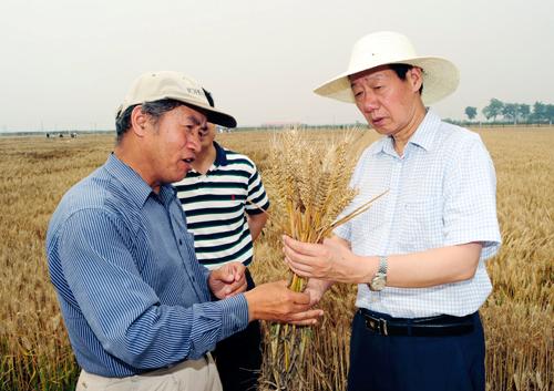 孙武学校长察看陈耀锋教授的小麦育种试验