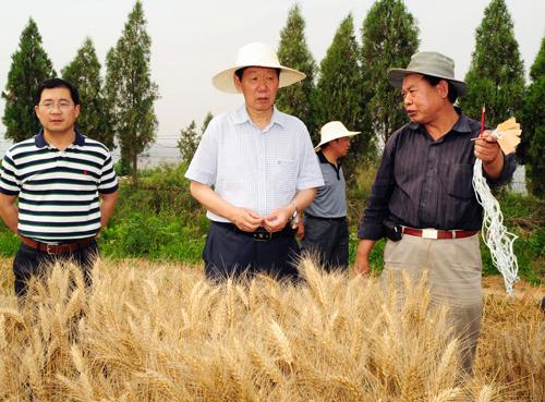 孙武学校长在王辉教授小麦育种试验地察看长势