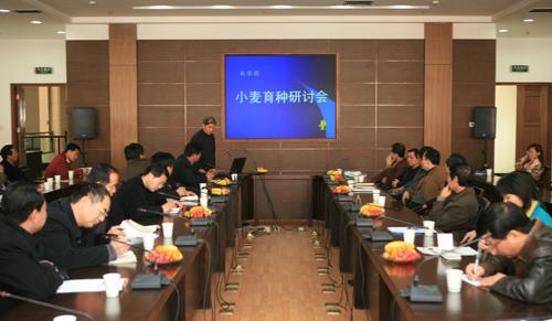 研讨会上,农学院张改生教授从我校小麦育种发展历史和特色,目前研究所处的位置,与国内外同领域的差距,以及今后中、长期规划和发展小麦育种事业亟需完善的基本条件等5个方面介绍了我校小麦育种研究的基本情况。王辉教授从我校小麦育种工作进展和当前工作重点等方面介绍了下一步的工作目标。王新中教授对小麦品种多点示范园(区)建设工作进行了介绍。随后,与会专家就各自在研究中遇到的问题进行了热烈讨论。
