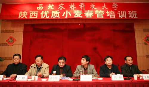 培训会上,国家优质小麦品种“西农979”的培育者、陕西省小麦专业组组长王辉教授讲授了“优质小麦品种及生产形势”,农业部小麦专家指导组成员、陕西省科技入户工程小麦组专家张保军教授讲授了“提升小麦高产优质的技术途径”,陕西省有突出贡献专家、省农业技术推广站王哲笃研究员讲授了“小麦四改技术”,国家优质小麦新品种郑麦9023培育者、国家小麦改良中心杨陵分中心副主任王新中教授作了“陕西2008年春季小麦苗情通报”,中国北方小麦栽培学会理事、陕西省“三五”人才张睿研究员讲授了“小麦春季管理目标与技术措施”。