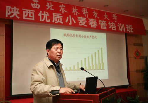 当前,正值小麦起身、拔节阶段,小麦生产进入了春季管理的关键时期。加强小麦春季田间管理,对于稳壮苗,促弱苗,控旺苗,促进小麦营养生长和生殖生长协调发展,达到个体健壮、群体合理、穗大粒多、优质高产具有重要意义。参加培训的学员全部是来自陕西省小麦入户县、小麦高产创建示范县、农业科技跨越计划与成果转化优质小麦示范基地县(市、区)的项目负责人及其技术负责人,他们的素质直接影响着有关项目实施的成效。