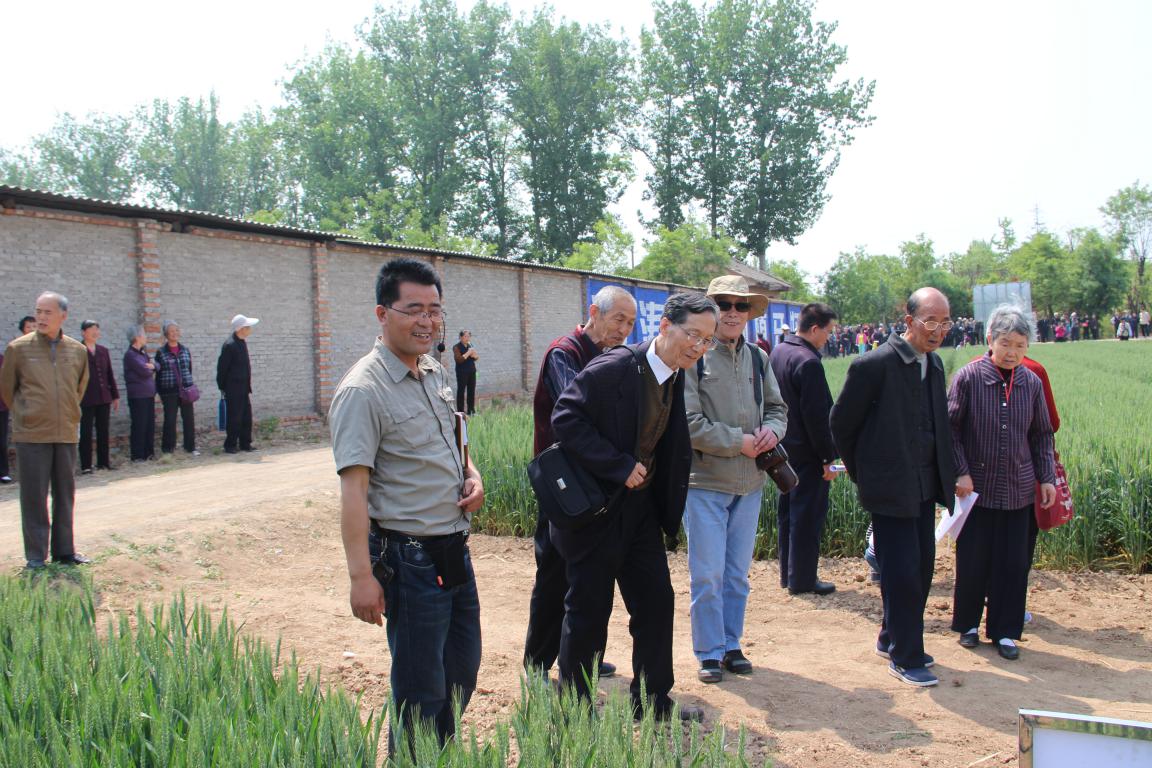 示范站站长海江波介绍了学校建立试验示范站的目的,运行机制,功能定位,已有成效和面临困难。离退休职工随后参观了试验站的中心展示田,驻站工作专家董永利重点介绍了我校培育的30个小麦新品种的大田表现情况。