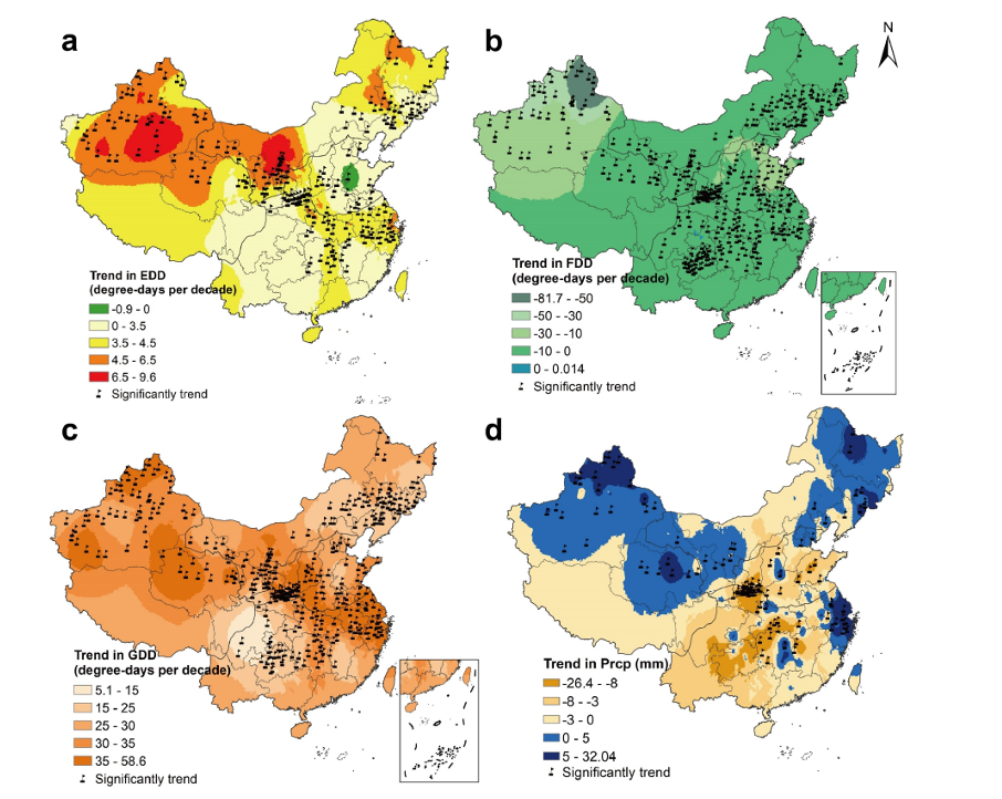 目前,人们对作物应对极端气候事件的响应机制了解仍有限,这成为预测气候变化对农业影响时的主要不确定性来源。该研究利用1980-2020年中国22个省份不同区域410个气象站的小麦产量数据和日观测数据,构建了区域特异性面板回归模型,以量化极端气候对小麦生产的影响。